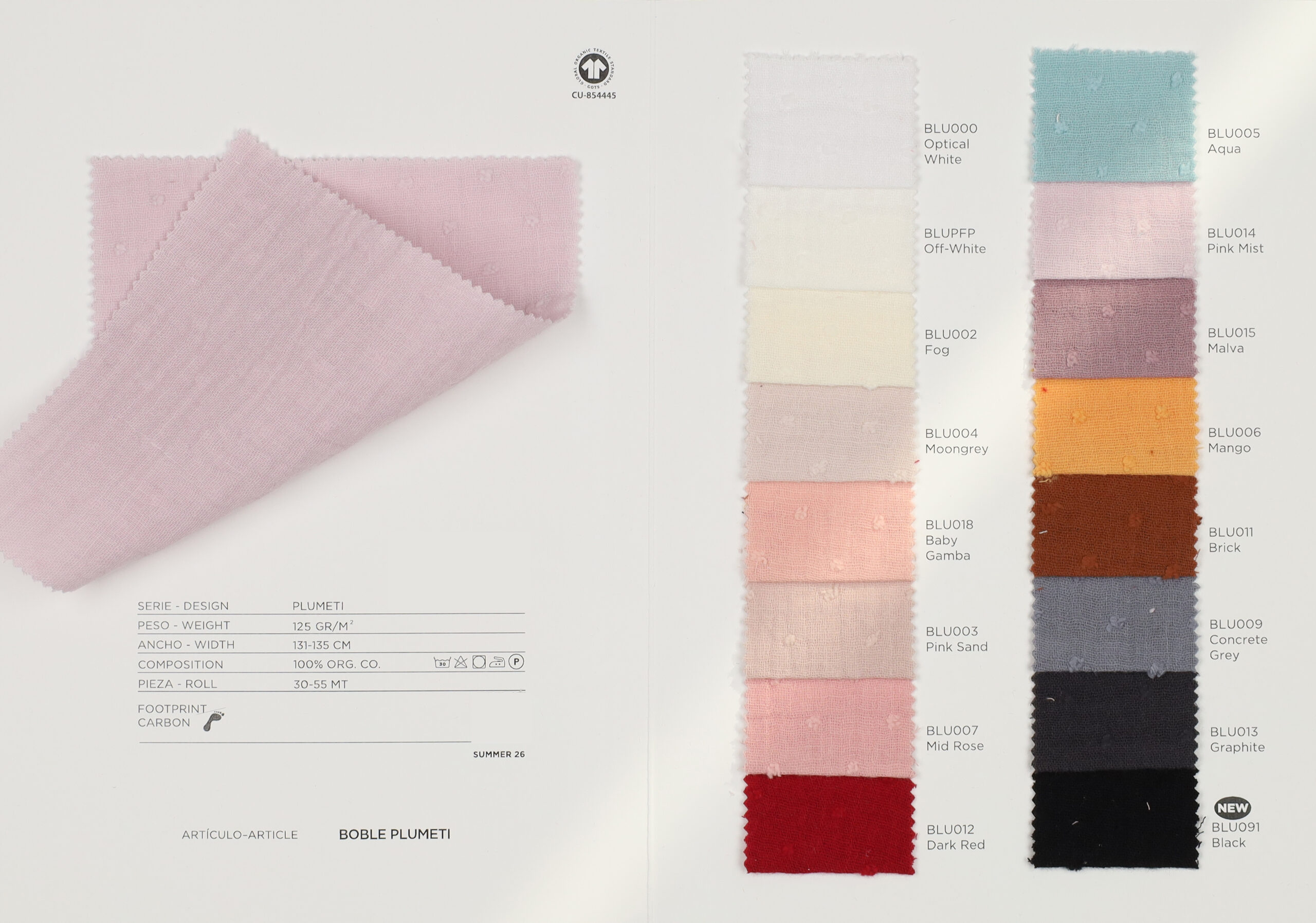 Le tissu BOBLE PLUMETI, composé à 100 % de coton biologique, est idéal pour une confection légère et aérienne.