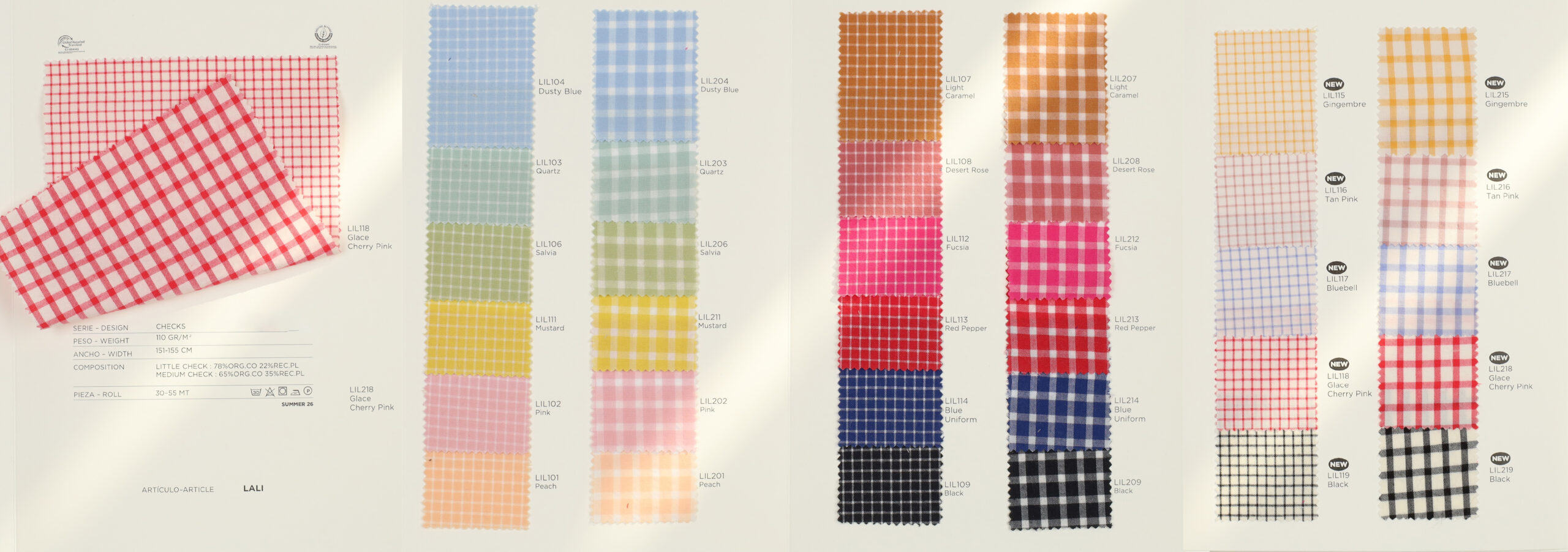Le tissu Lali est une matière fine qui se distingue par sa légèreté et son motif « carreaux » décliné en différentes échelles. Il répond aux besoins des professionnels à la recherche de tissus visuellement dynamiques et faciles à travailler.