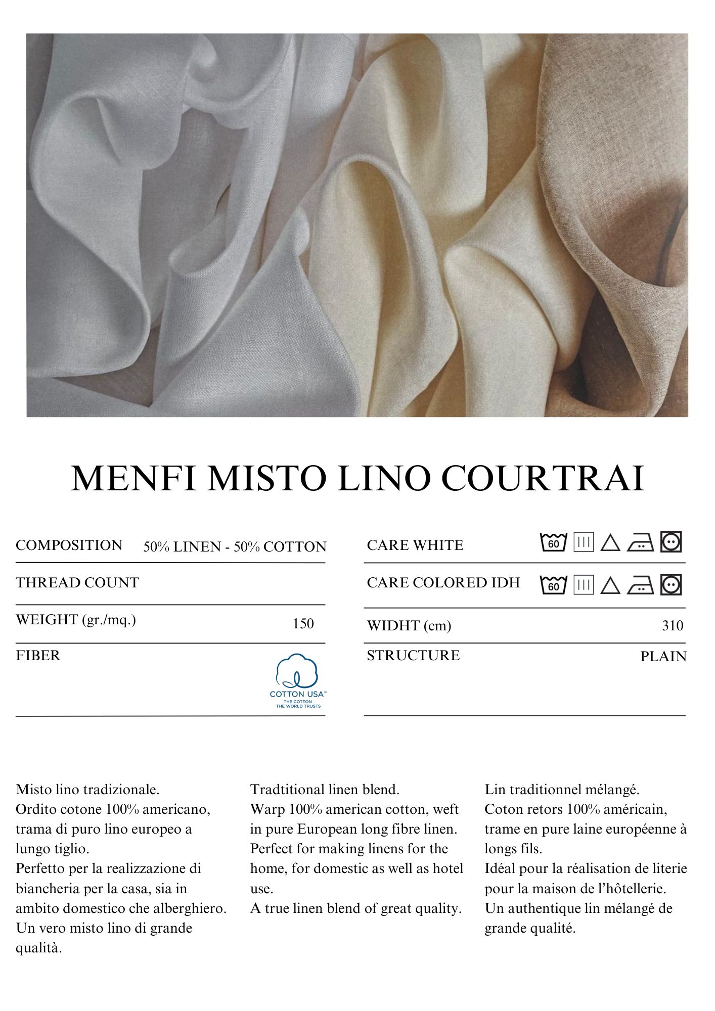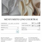 De plus, le Menfi Misto Lino combine les avantages du lin traditionnel et du coton retors 100 % américain. D’une part, il lui confère à la fois une résistance supérieure. D’une autre part, une respirabilité et un confort exceptionnel. De plus, ce tissu bénéficie d’une trame en pure laine européenne à longs fils. En effet, sa texture garantit ainsi une longévité accrue et une stabilité dimensionnelle. Enfin, le lin mélangé permet donc une utilisation quotidienne dans le secteur de l’hôtellerie et de la maison.