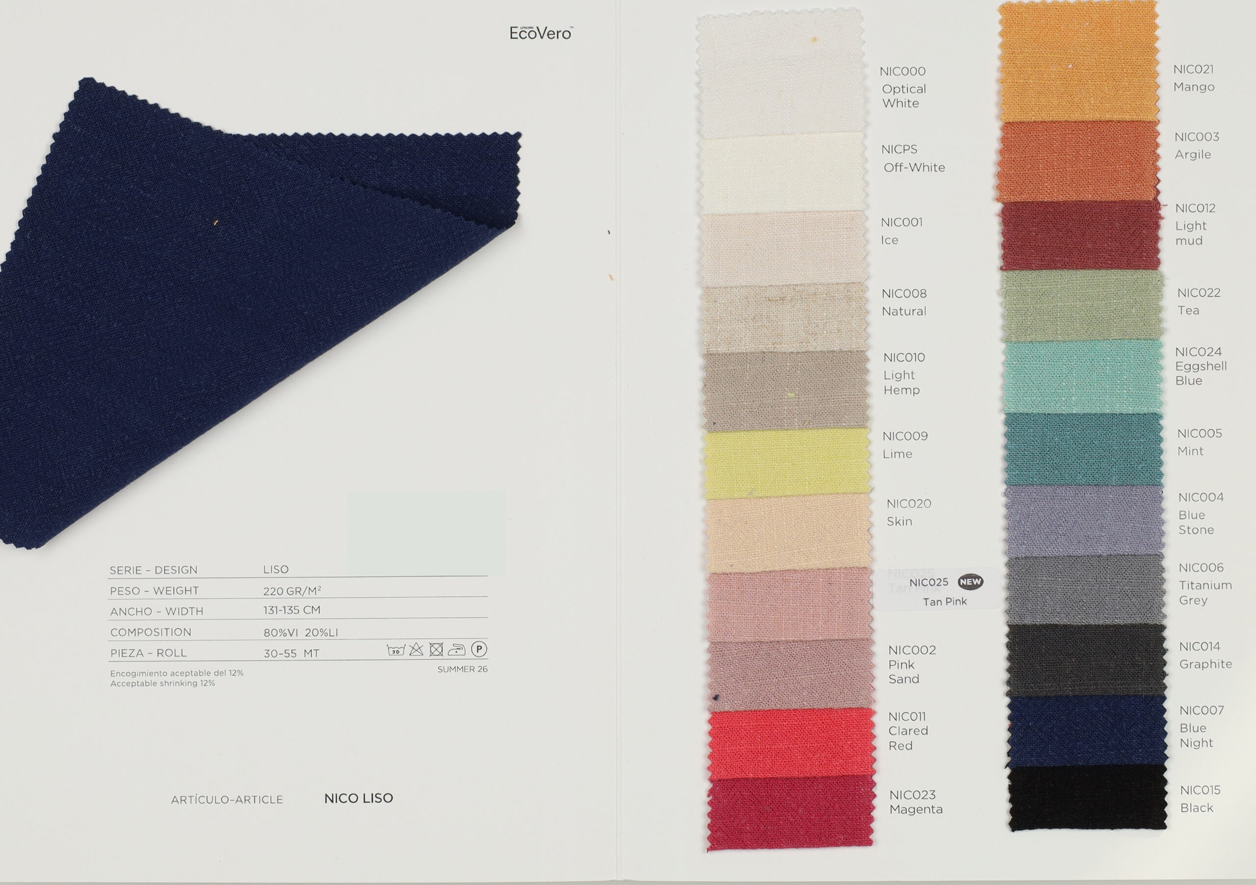 Le tissu Nico est une matière naturelle, fluide et élégante. Ce tissu uni associe viscose et lin pour offrir un toucher doux, un tombé souple et un aspect légèrement texturé. Enfin, il répond aux exigences des professionnels recherchant un tissu à la fois raffiné, confortable et facile à travailler.