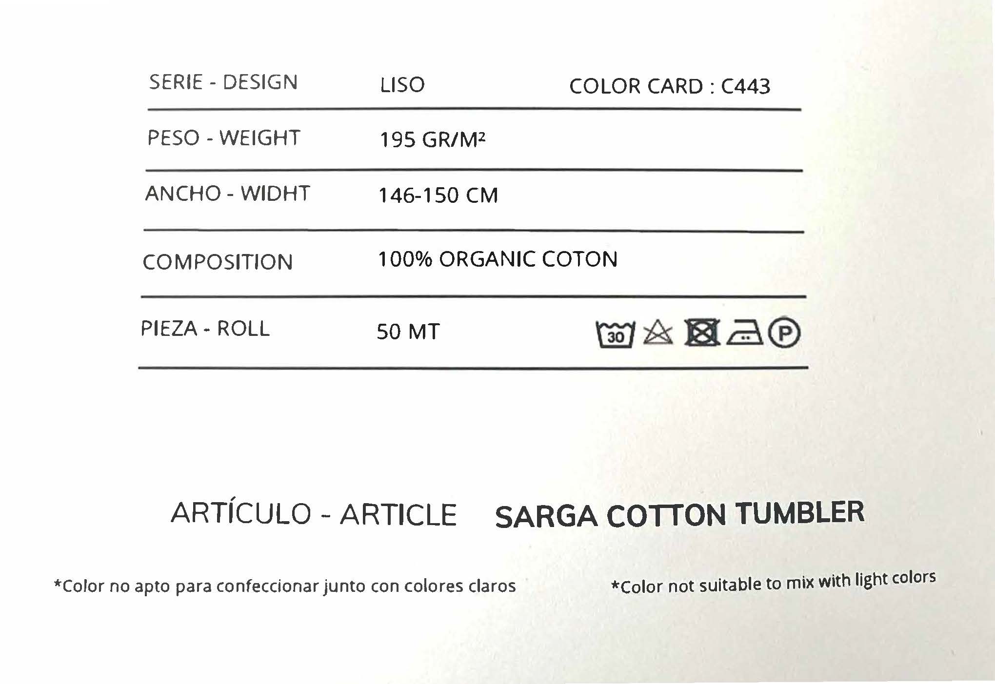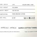 Le tissu SARGA COTTON TUMBLER incarne l’alliance parfaite entre qualité, durabilité et respect de l’environnement. Fabriqué à partir de 100 % coton biologique, il se distingue par sa robustesse, son toucher doux et son tissage sergé.